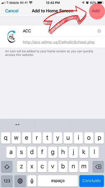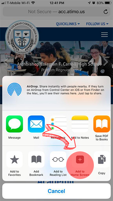 Open your Safari browser and visit archbishopcolemancarroll.org, tap on the "share" icon at the bottom of the screen.